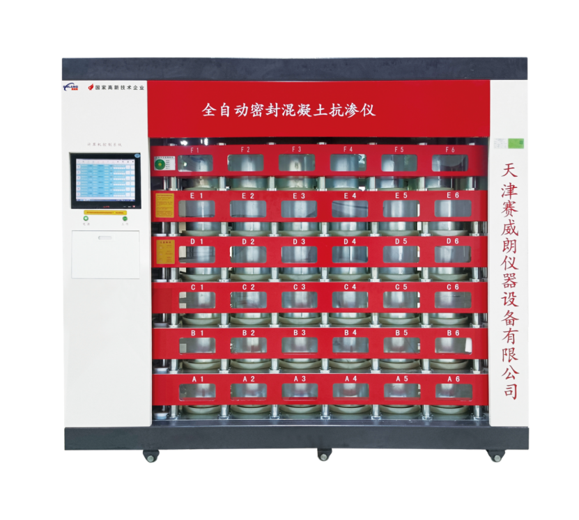 混凝土抗渗仪主要用于混凝土抗渗性能的测定和研究,混凝土抗渗试验除了繁琐和效率低下,最主要痛点还是试验量巨大,为顺应广大客户的需求,我公司推出新款全自动混凝土抗渗仪,一次可做6组36个试件或者5组30个试件,新款全自动混凝土抗渗仪,无需涂抹任何密封材料、自动密封、自动加压、自动恒压、自动计时、自动判断渗漏、自动记录数据、自动脱模、实时监控,让检测环境更为整洁。